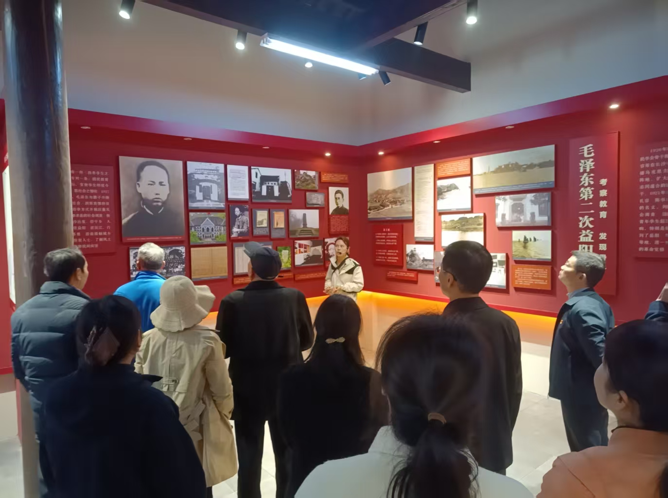 在金家堤党史陈列馆,大家在讲解员引领下认真参观“播撒火种”“风起洞庭”“湘中惊雷”等展区,通过泛黄的史料、珍贵的文物、生动的场景复原,重温了中共金家堤支部 —— 益阳第一个农村党支部的创建历程,深刻感悟了欧阳笛渔、夏曦等革命先辈 “忠诚于党、信念如磐、不怕牺牲、一心为民” 的红色精神,进一步坚定了“为党育人、为国育才”的初心使命。