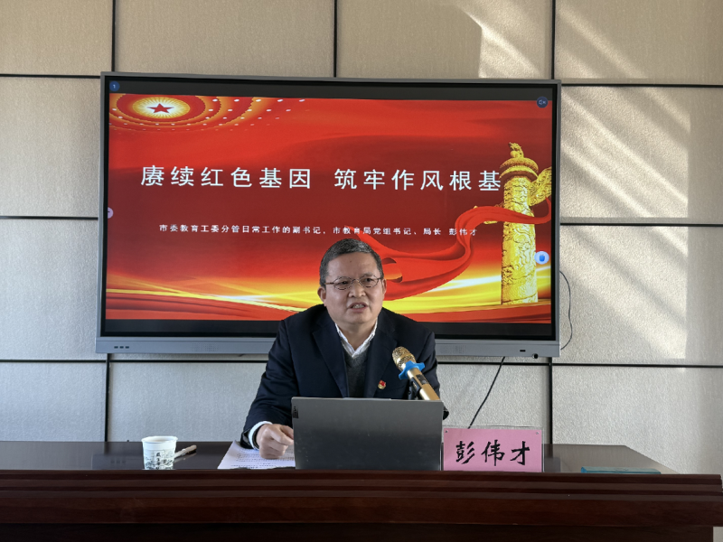随后,市委教育工委相关负责人才以《赓续红色基因 筑牢作风根基》为题,为全体党员讲授专题党课,围绕“溯源红色根脉、传承优良作风、砥砺奋进之志”三个维度,并结合益阳教育实际,深刻阐释了红色基因与作风建设的内在联系。他指出,全体党员要从红色基因中汲取信仰之力,从优良作风中汲取奋进之力,以忠诚担当筑牢政治根基、以务实肯干破解发展难题、以廉洁自律涵养清风正气、以开拓创新激发内生动力。他强调,全体党员要做红色基因的坚定传承者,做优良作风的模范践行者,做教育高质量发展的积极推动者。要聚焦教育改革发展重点任务,以优良党风引领益阳教育高质量发展。