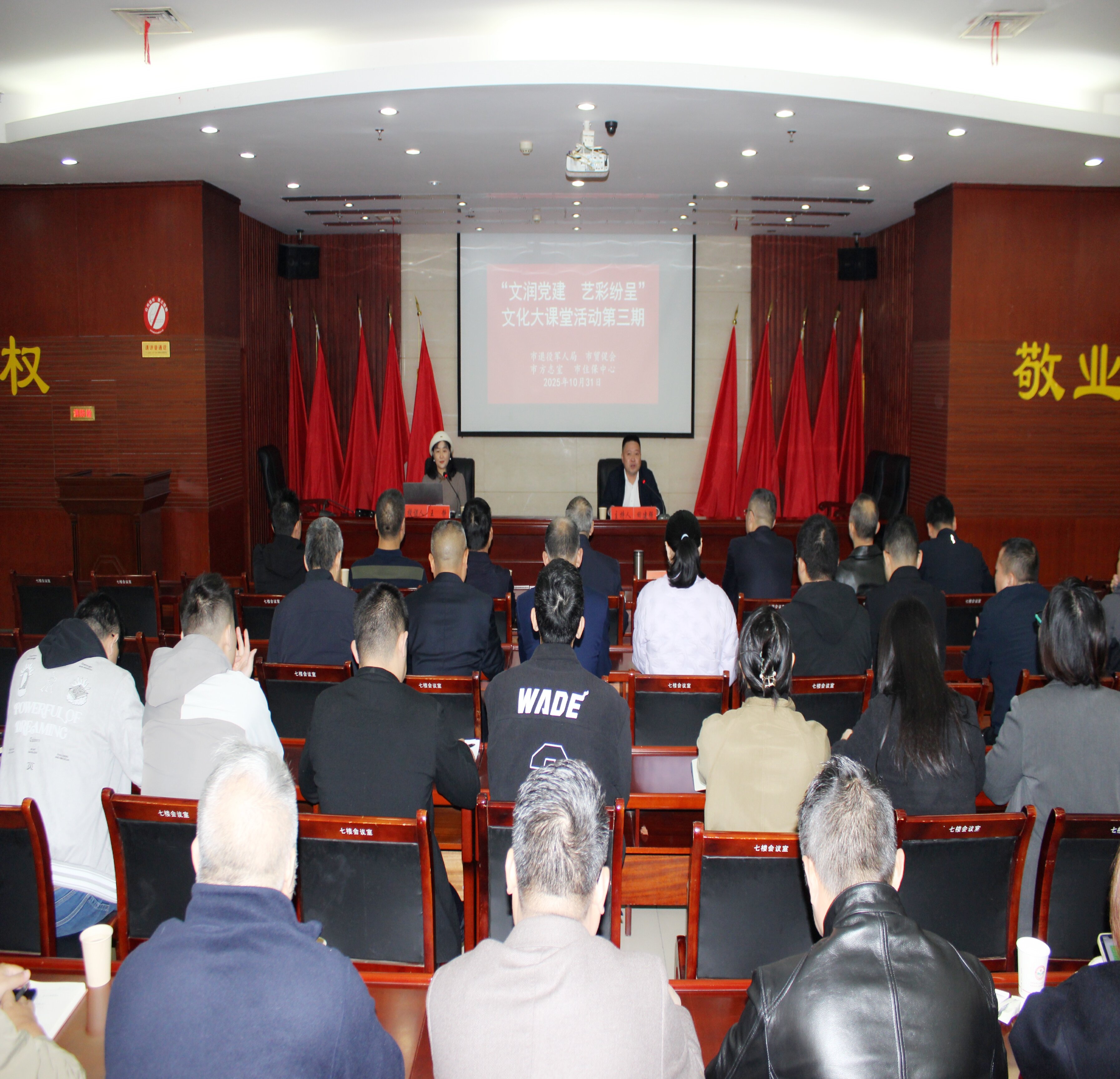 10月31日上午,市退役军人事务局联合市贸促会、市方志室、市住保中心举办“文润党建 艺彩纷呈”文化大课堂第三期活动,邀请湖南城市学院副教授、国家二级心理咨询师王静进行“党员干部心理健康”讲座。