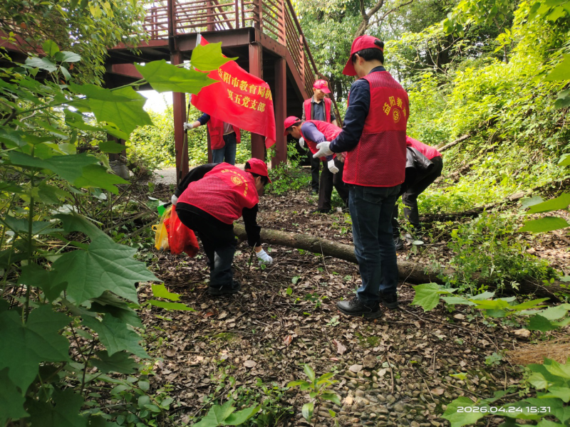 4月24日,趁着天朗气清,市教育局第五党支部全体党员齐聚秀峰公园,开展了一场以“拒腐防变、除浊扬清”为主题的义扫实践活动,用汗水擦亮城市“绿肺”,以行动践行初心使命。