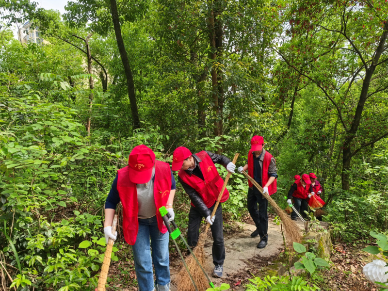 24日下午,秀峰公园山脚下,党员沿着步道拾级而上。枯枝败叶厚积处,扫帚齐挥;步道缝隙藏污纳垢,铁铲深入;草丛中零星垃圾,垃圾夹精准拾取。山顶休息亭处,有枯树阻挡了前行道路,大家齐心协力将树枝一点点挪开,打开了一条清洁的前行路。
