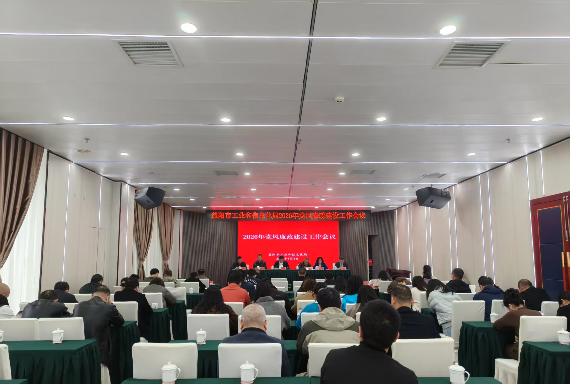 4月3日上午,市工业和信息化局召开2026年党风廉政建设工作会议。局班子成员、机关及直属机构干职工共80余人参加会议。
