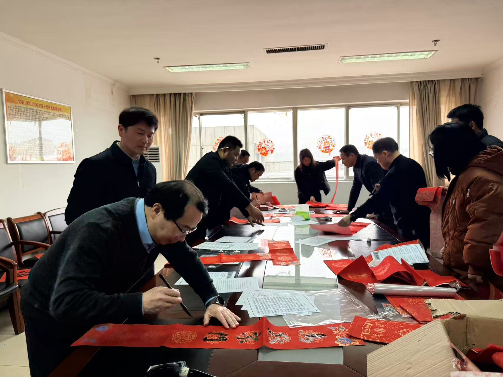 2月11日上午,市政府机关工会在机关大楼内开展一场温馨喜庆的送春联活动。